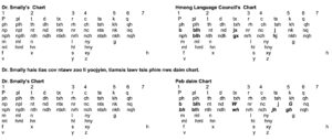 Peb daim chart los yeej tsis phim nws daim chart, tiamsis lwm haiv neeg cov txiaj ntawv muaj suab tas tus, Cas peb li ho tsis muaj suab rau tus b, tus g, tus j, thiab tus w? Peb cov las (consonants) ntau tshaj lwm haiv neeg li, peb tsim nyog muaj suab rau txhua tus txiaj ntawv ua ntej peb yuav muab 2 tug lossis 3 tug txiaj ntawv los sib lo.